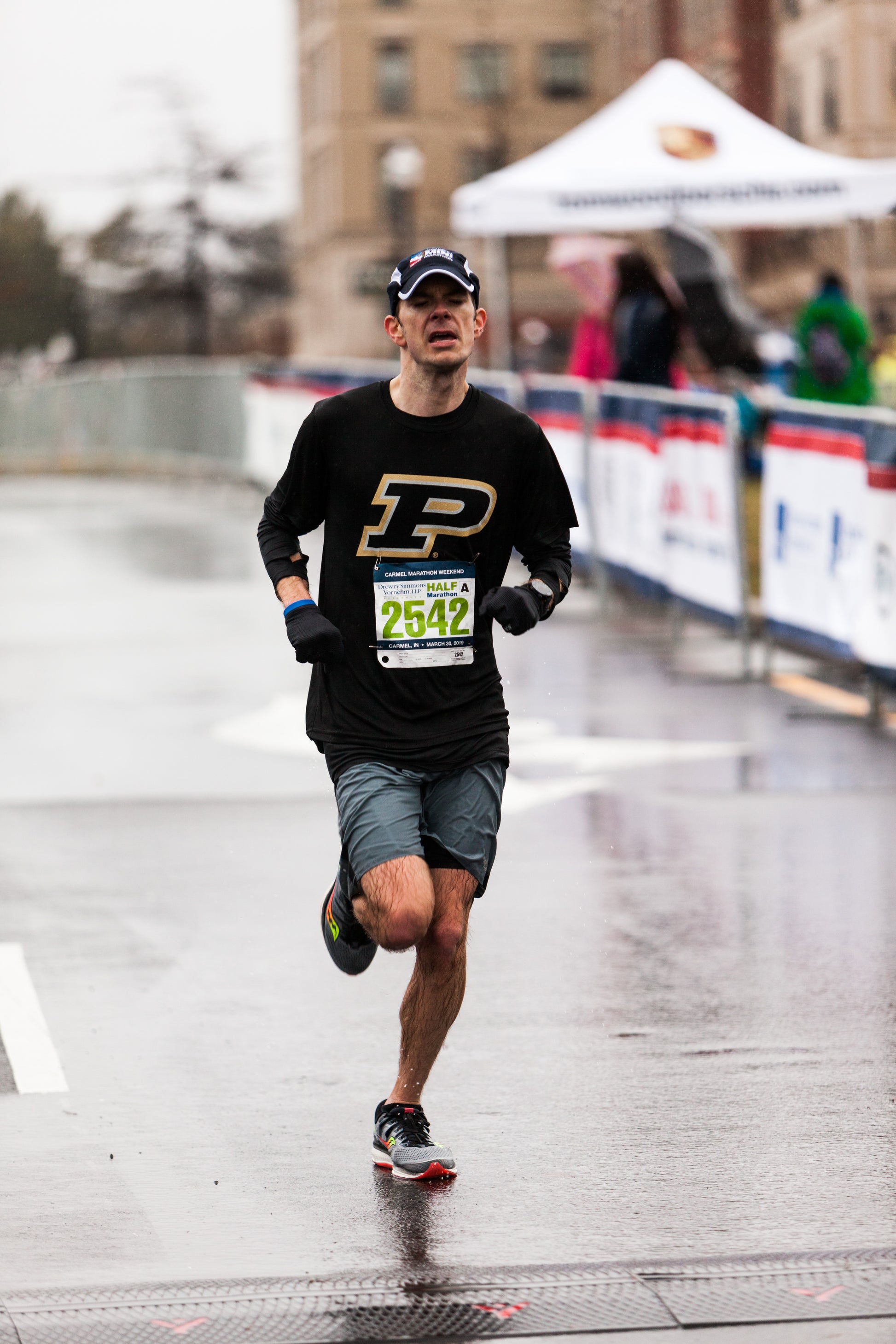 Purdue short sleeve tech with large P - women's only